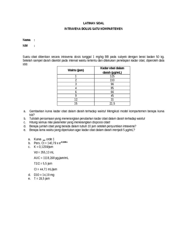 This entry was posted in farmakokinetika pharmacy on march 5, 2016 by zolla verbianti suwita. Cepat diserap melalui saluran cerna. Contoh dan kumpulan materi soal farmakologi memberikan obat yang dimasukkan melalui mulut adalah pengertian dari. Mar 05, 2016 · pembahasan soal hitungan farmakokinetika klinik untuk iv. View farmakokinetik soal dan jawaban.docx from course 580 at rutgers university.